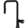 - Вытяжной шланг позволяет легко достигать труднодоступных мест, например, мыть большие кастрюли или заполнять высокие емкости. На изливе смесителя установлены кнопки с выбором стандартного, душевого или «Blade» режима.